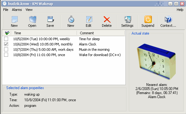 KM Wakeup is used to define an alarm list, which can: